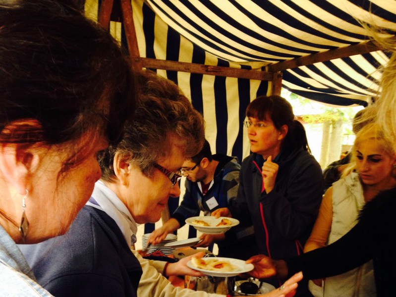 Helfer haben gemeinsam mit Asylbewerbern in Kochteams viele verschiedene internationale Köstlichkeiten zubereitet. Es herrschte ein großer Andrang am Stand und schon bald waren alle Leckerein verspeist. Vielen Dank an dieser Stelle an alle, die für das Essen eine kleine, oder auch größere Spende für die Arbeit des Helferkreises geleistet haben.