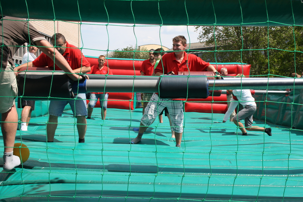 Beim Lebend-Kicker-Turnier wurde im wahrsten Sinn des Wortes heiß gekämpft. Beide Mannschaften mussten sich erstmal finden. Angefeuert von den zahlreichen Fans aus dem Helferkreis errang die Mannschaft "Respekt 1" den Gesamtsieg. Die Teilnehmer waren sehr stolz und zufrieden mit sich. Als Hauptpreis erhielten die Sieger jeweils einen Gutschein vom Stand „Fair Trade“. Wir hatten sehr viel gemeinsamen Spass und saßen noch lange zusammen.